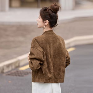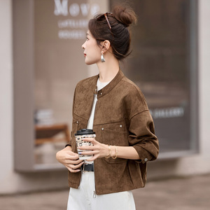 时尚短款休闲外套女2025春秋新款高级感休闲百搭宽松显瘦立领上衣