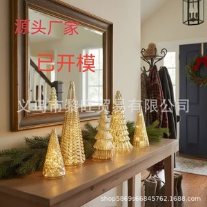 跨境新款Illuminated Mercury Glass Trees发光透明树脂树5件套