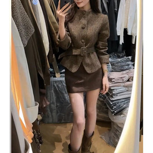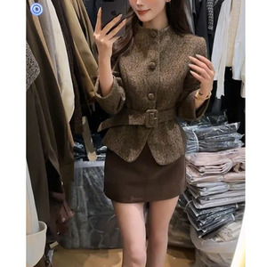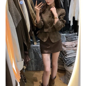 2025早秋新款女法式气质修身重工长袖外套百搭高腰显瘦A字半身裙