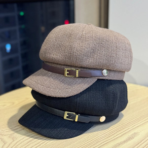 新款八角帽子女时尚英伦风春秋冬大头围显脸小适合方圆脸贝雷帽子