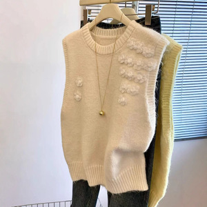 立体花朵纯色圆领针织背心2025秋冬新款复古风外搭软糯毛衣女马甲