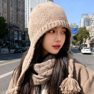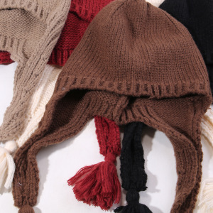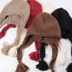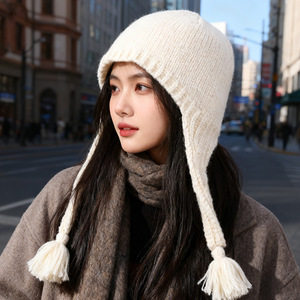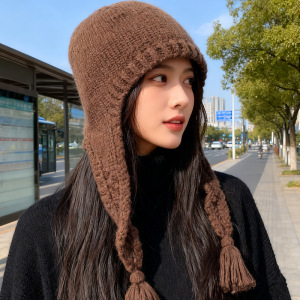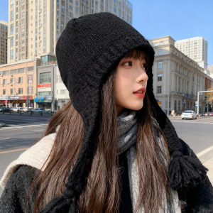 韩国新款针织帽女冬保暖护耳雷锋帽百搭显脸小套头帽纯色毛线帽子