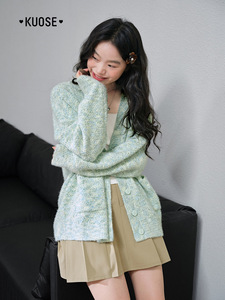 阔色绿色v领软糯宽松外搭上衣毛衣女秋冬季新款针织开衫外套