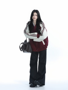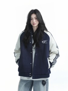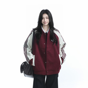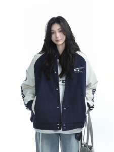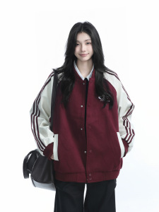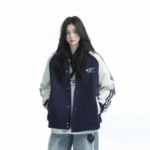 【坐吃山空】美式复古棒球服外套女秋季设计感撞色宽松情侣夹克潮