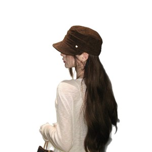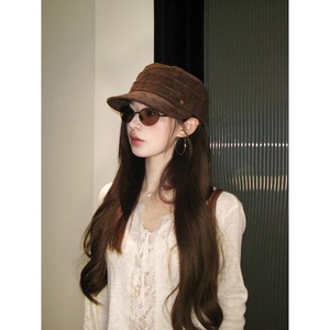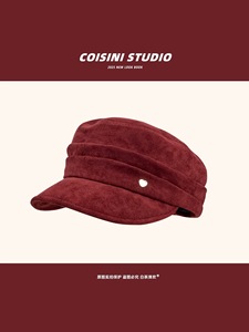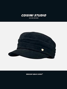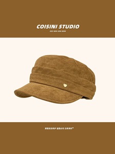 麂皮褶皱马术平顶贝雷帽女春秋复古做旧八角帽高级感百搭鸭舌帽子