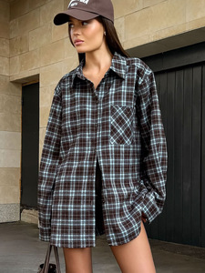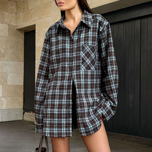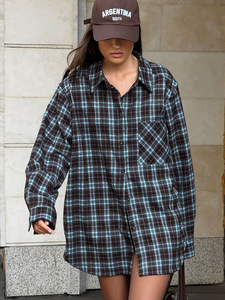 2025年新款休闲复古格纹衬衫秋冬设计感宽松格子衬衣欧美女装上衣