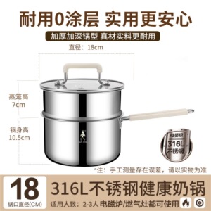 加厚无涂层小奶锅316L食品级不锈钢宝宝辅食锅婴儿煎煮一体煮面锅