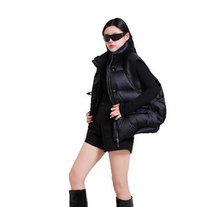 跨境黑色百搭鹅绒马甲女短款2025冬新款立领加厚羽绒背心坎肩马夹