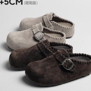 包头拖 5cm小个子增高版牛反绒勃肯半拖鞋女一脚蹬2025新款穆勒鞋