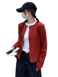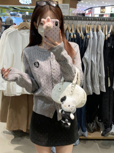2025气质休闲秋季学院风麻花针织开衫女小众刺绣韩系毛衣外套上衣