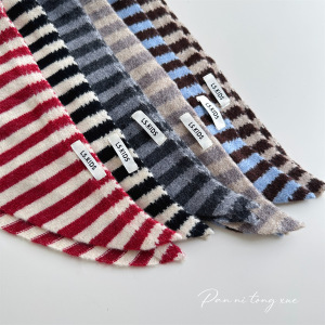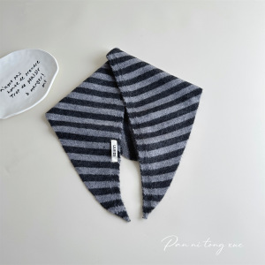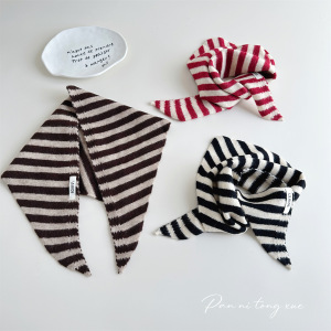 儿童时髦配饰毛线围巾秋冬多用洋气条纹针织披肩三角巾保暖小围脖