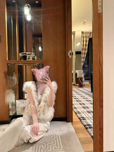 ANNA同款反差小野猫进口白狐大帽子清冷感车条皮草马甲外套