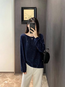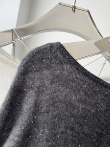 星河流动~山羊绒珠片纱一字领上衣真丝羊毛薄款毛衣针织女秋新25