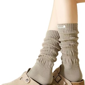 秋冬季ins潮黑色小腿袜女外穿百搭配小皮鞋长袜纯色长筒堆堆袜子