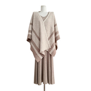 羊毛针织斗篷披肩女外搭配裙子2025新款围巾加连衣裙时尚休闲套装
