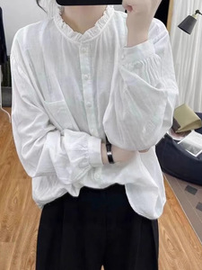 纯色长袖棉麻衬衫女春秋复古小个子宽松时尚百搭显瘦衬衣打底外穿