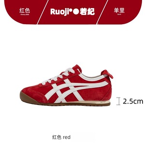 真皮版复古红色内增高德训鞋女2025新款春季平底运动阿甘休闲鞋