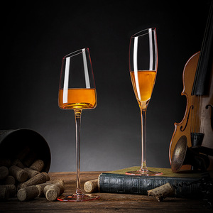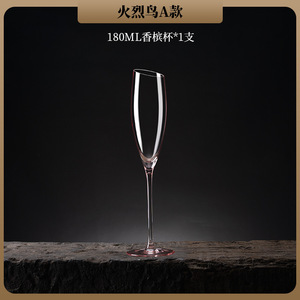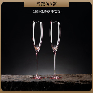 轻奢家用高颜值浅粉色水晶香槟杯简约个性酒杯结婚礼物对杯水晶杯
