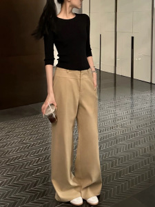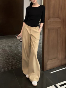 5werkwe 雅痞老钱拉夫美学 极简复古其裤休闲裤宽松直筒裤女