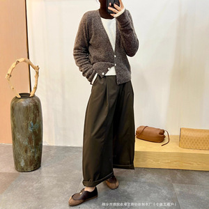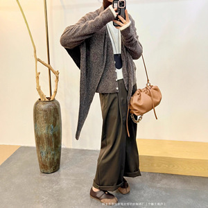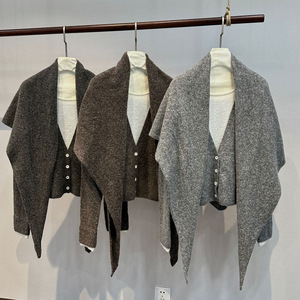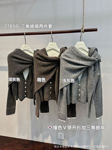 衣号自制两件套撞色V领开衫加三角披肩羊驼拉毛工艺 韩国针织女冬