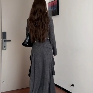 两件套法式灰色针织连衣裙子女秋冬季2025新款小个子穿搭一整套装