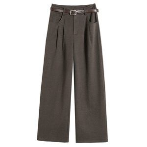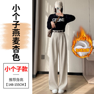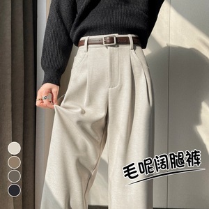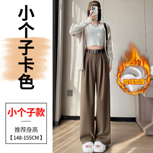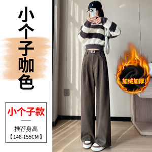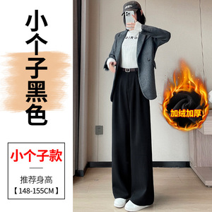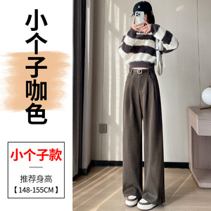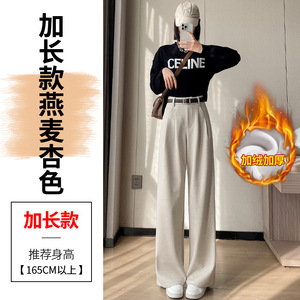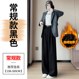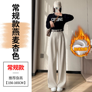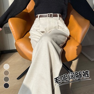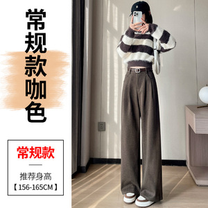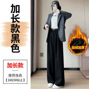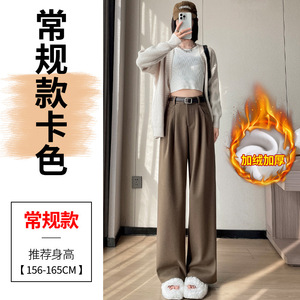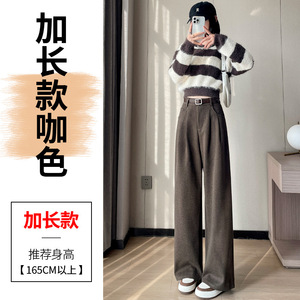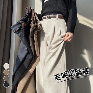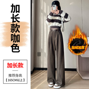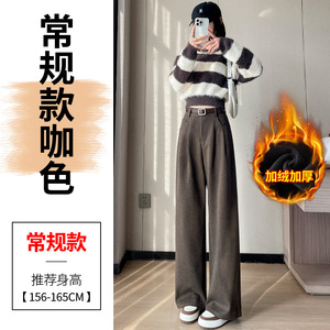2025秋冬新款加绒毛呢阔腿裤直筒拖地裤高腰显瘦宽松窄版休闲裤女