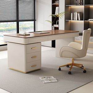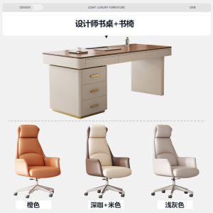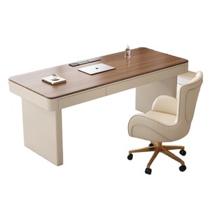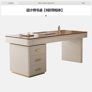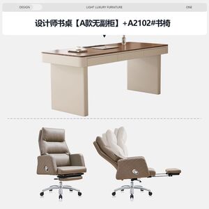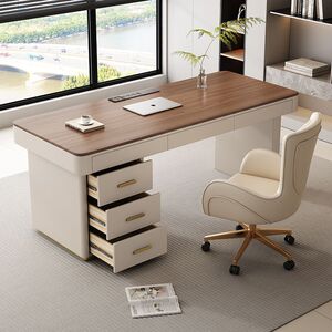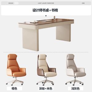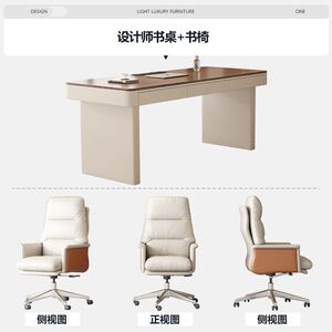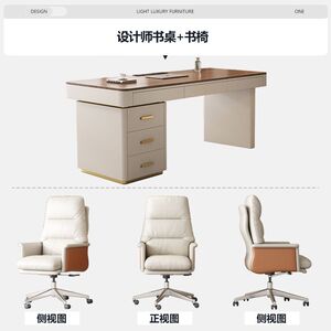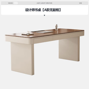 胡桃色实木书桌轻奢现代简约高级感家用书房客厅电脑工作台办公桌