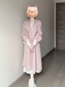 反季温柔粉色呢子大衣女2025新款春秋毛呢外套韩系气质高级中长款