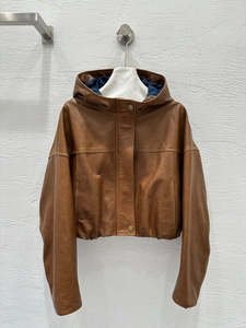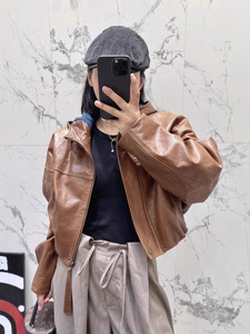 2025秋冬时髦工装连帽休闲進口小羊皮皮衣外套女短款显瘦短外套
