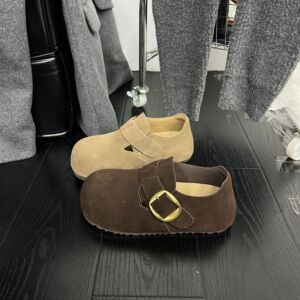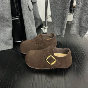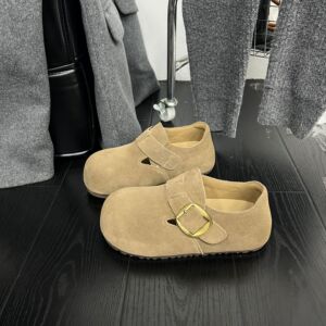 复古真皮内增高勃肯鞋女2025秋新款皮带扣圆头丑萌森系一脚蹬单鞋