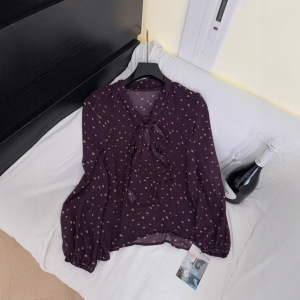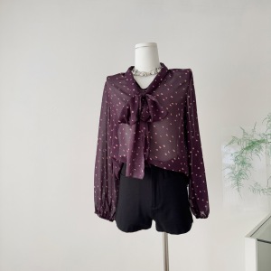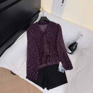 2025新款秋装法式氛围感飘带优雅气质雪纺衫上衣波点长袖衬衫女