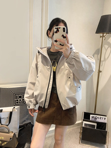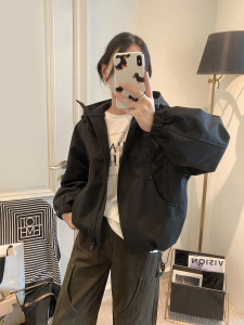 冲锋衣女款2025新款秋季女装韩版时尚设计感抽绳连帽外套女上衣潮
