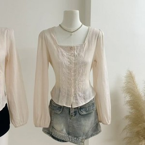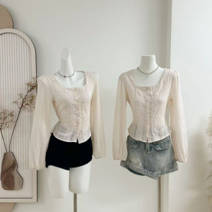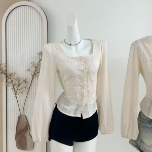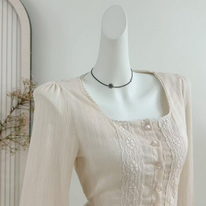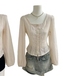 小众设计早秋法式方领蕾丝显瘦长袖衬衫上衣