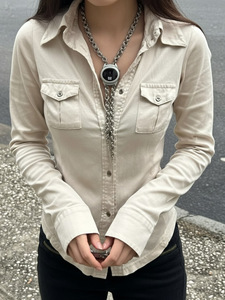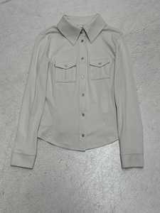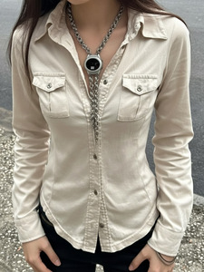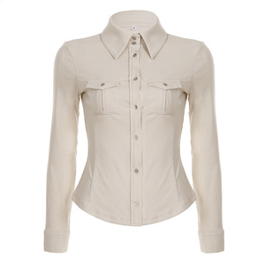 欧美翻领简约休闲工装紧身针织衬衫跨境新款修身显瘦设计长袖上衣
