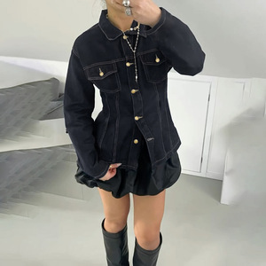 美式复古辣妹收腰显瘦分割设计牛仔衬衫外套气质休闲学院风上衣女