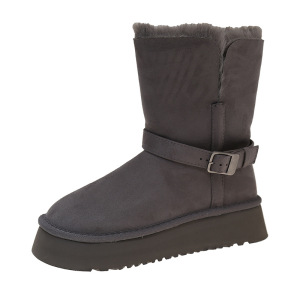 羊皮毛一体厚底牛皮加绒雪地靴女靴2025新款皮扣带保暖棉靴短靴女
