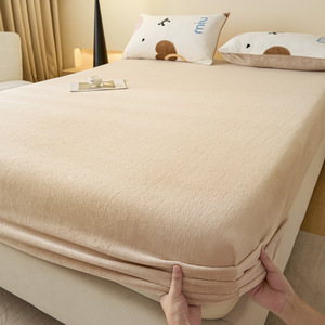 简约冬季加厚保暖牛奶绒单件床笠床垫防尘保护套单品套法兰绒床罩