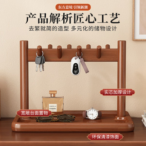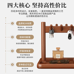 桌面置物架家用门口钥匙挂架收纳实木入户门装饰托盘物品摆放架子