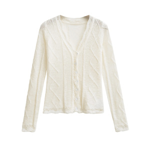 慵懒老钱风白色镂空马海毛针织开衫女秋冬高级感收腰毛衣罩衫外套
