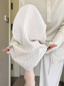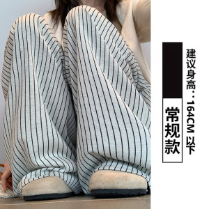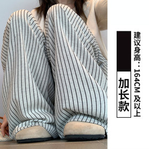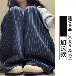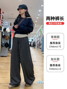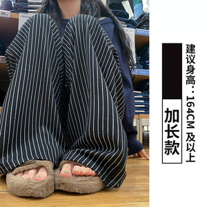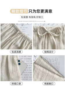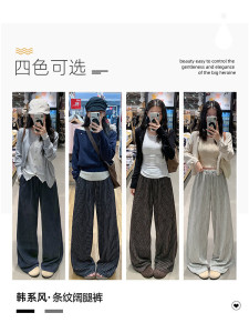 条纹亚麻阔腿裤女秋季薄款2025新款高腰宽松小个子棉麻休闲直筒裤
