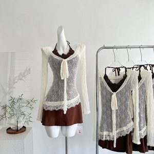 费尔维伊韩系纯欲辣妹风领连衣裙甜妹套装罩衫女