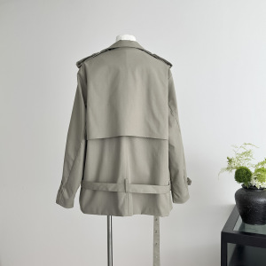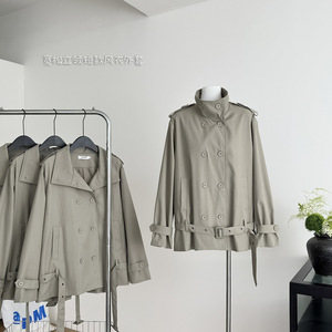 柔软廓型湖灰色宽松立领短款风衣双排扣气质外套女2025秋季新品