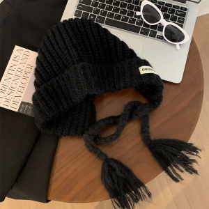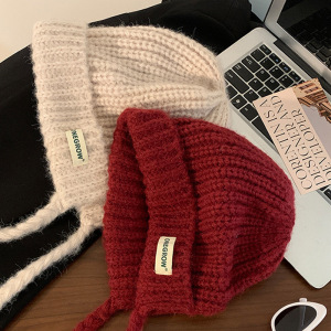 蓝色巴拉克拉法帽女秋冬季保暖护耳针织毛线帽显脸小防寒包头帽子