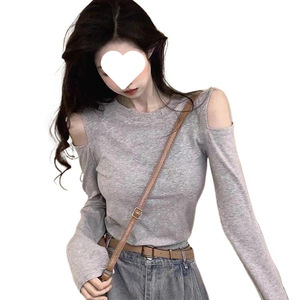 早秋设计感纯色2025春秋新款辣妹新款露肩特色上衣修身洋气百搭女