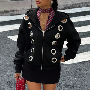 秋冬跨境镂空金属环卫衣连帽拉链设计个性金属元素街头潮酷新风格