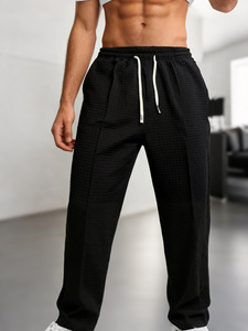 跨境亚马逊外贸春秋休闲长裤男款松紧腰宽松运动休闲华夫格男裤