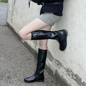 更舒适运动底可调筒宽皮带扣骑士靴2025秋冬圆头中跟高筒长靴子女