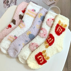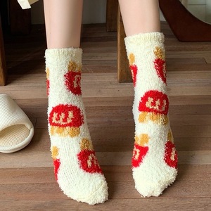 珊瑚绒卡通中筒袜女秋冬加厚保暖睡眠袜可爱地板袜
