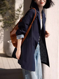 "纸片人"内里撞色/翻领一手长风衣外套秋