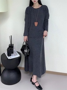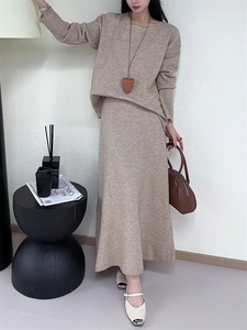 2025名媛风针织套装女秋冬软糯毛衣+半身裙两件套高级感跨境专供